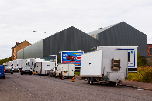 The Shed was used as the location for the opening scenes of each programme in the series. The large vehicle entrance is shown lifting for the team to drive out onto the distinctive industrial look of Clydebrae Street.
